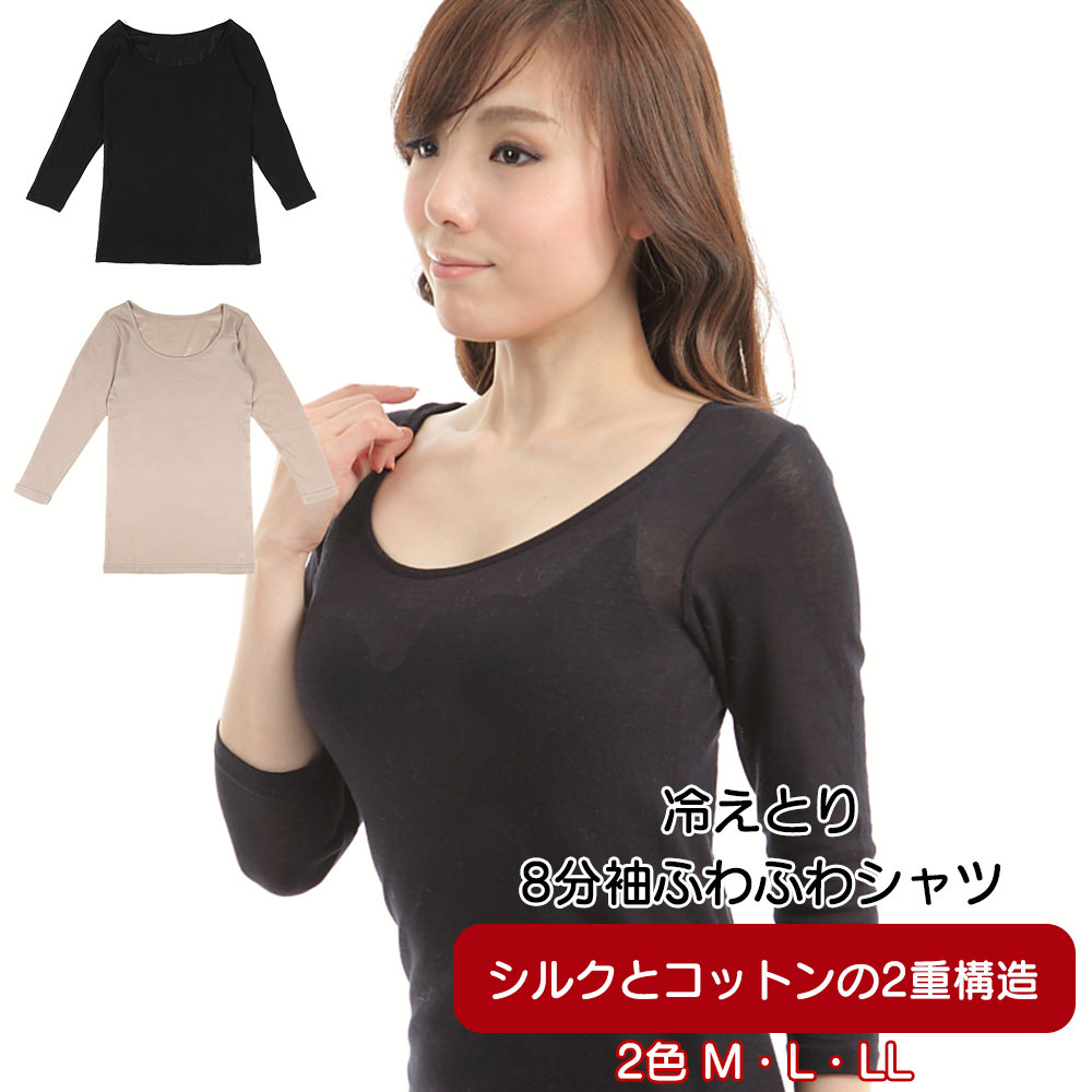 冷えとり8分袖ふわふわシャツ シルク&コットン